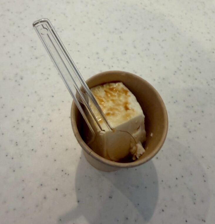 たい焼きを注文すると、店員さんが「こちら、試食です」と差し出してくれたのが、「永遠の豆富屋」というブランドの豆富。