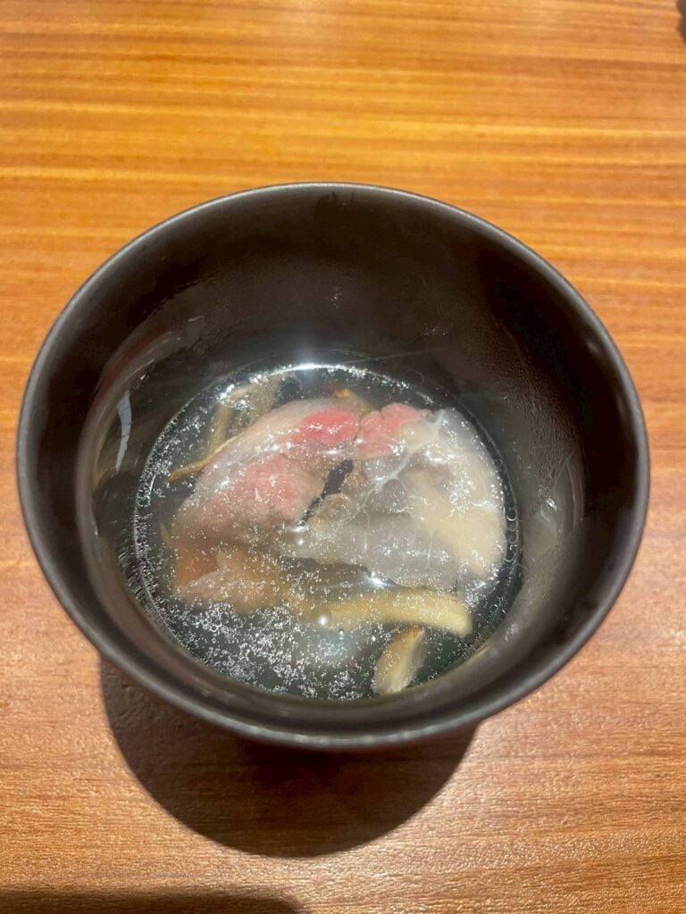 最初の一皿は「松茸と馬肉のお吸い物」。