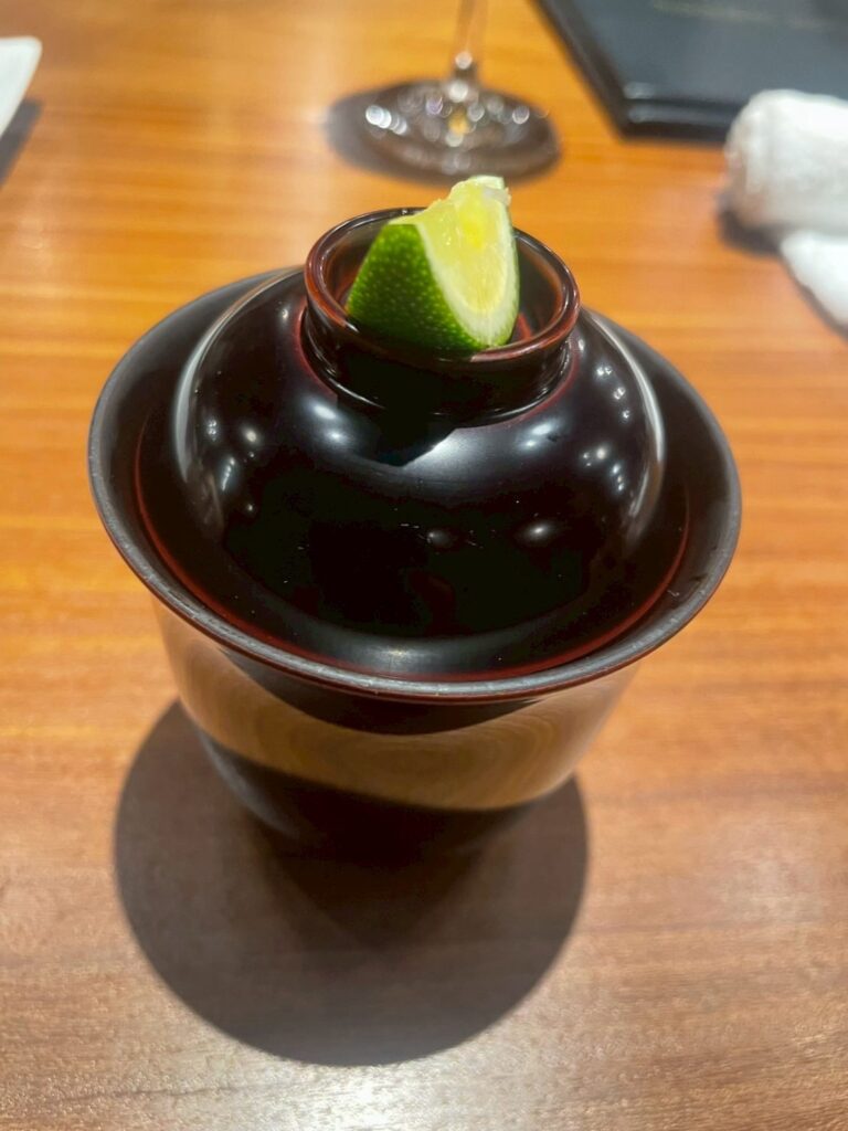 澄んだ出汁の中に浮かぶ松茸は肉厚で、噛むとじゅわっと香りが広がります。そこにカボスを一絞り。