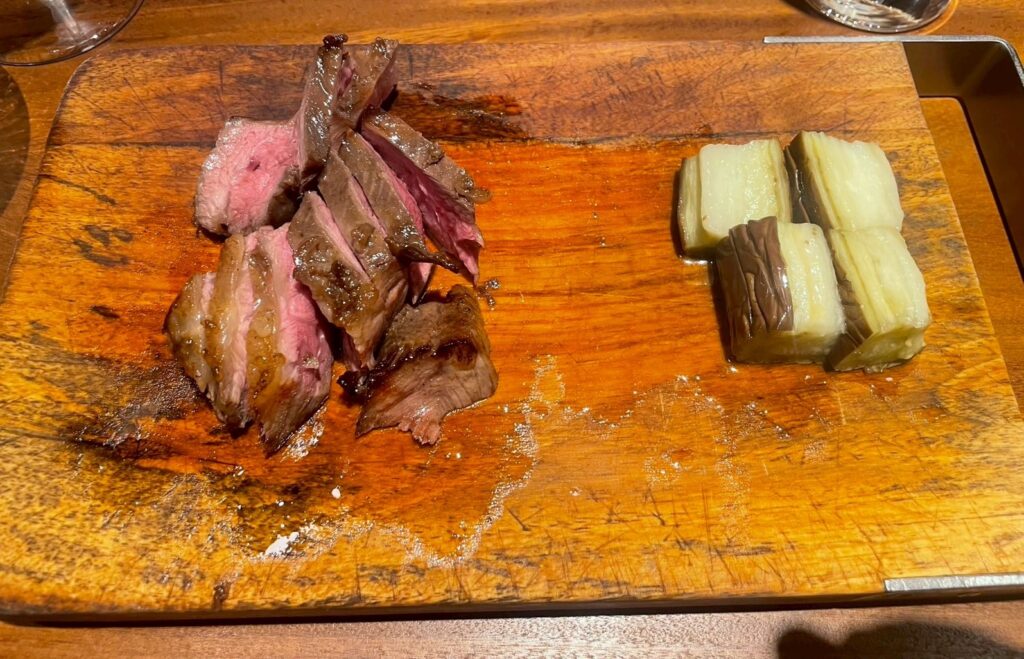 続いて登場したのは、秋らしさ満点の「イチジクソースを添えた馬肉ステーキ」。