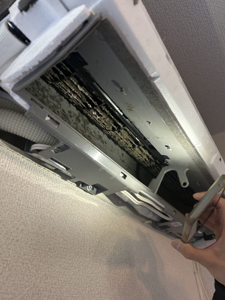奥のカビや風の吹き出し口の汚れまでは本当に手が届きません。