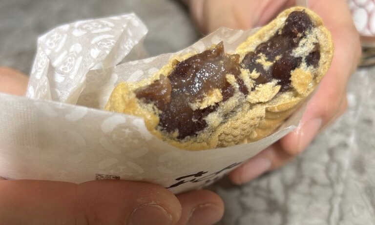 サクサクの皮、しっとりしたあんこ、もっちり求肥の三重奏は、一度食べるとやみつきになります。