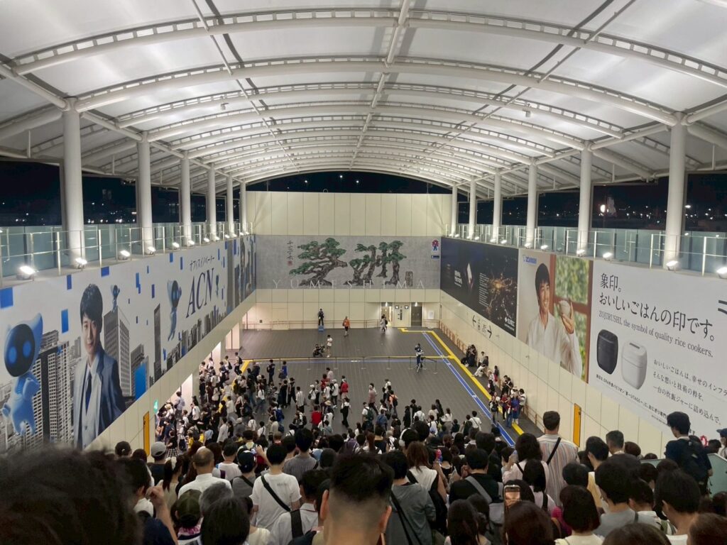 駅に入ることすらできず、係員の指示でぐるぐると迂回ルートを歩かされます。人の多さはまさに“地獄絵図”。