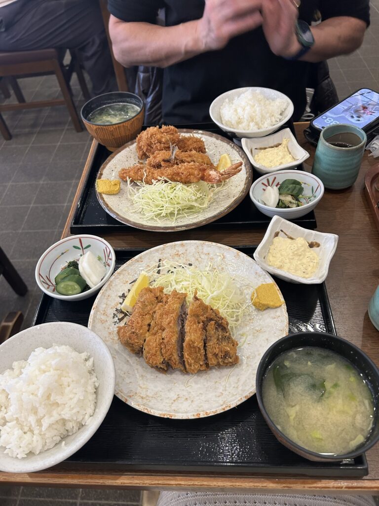 まずは夫のミックスフライ定食。