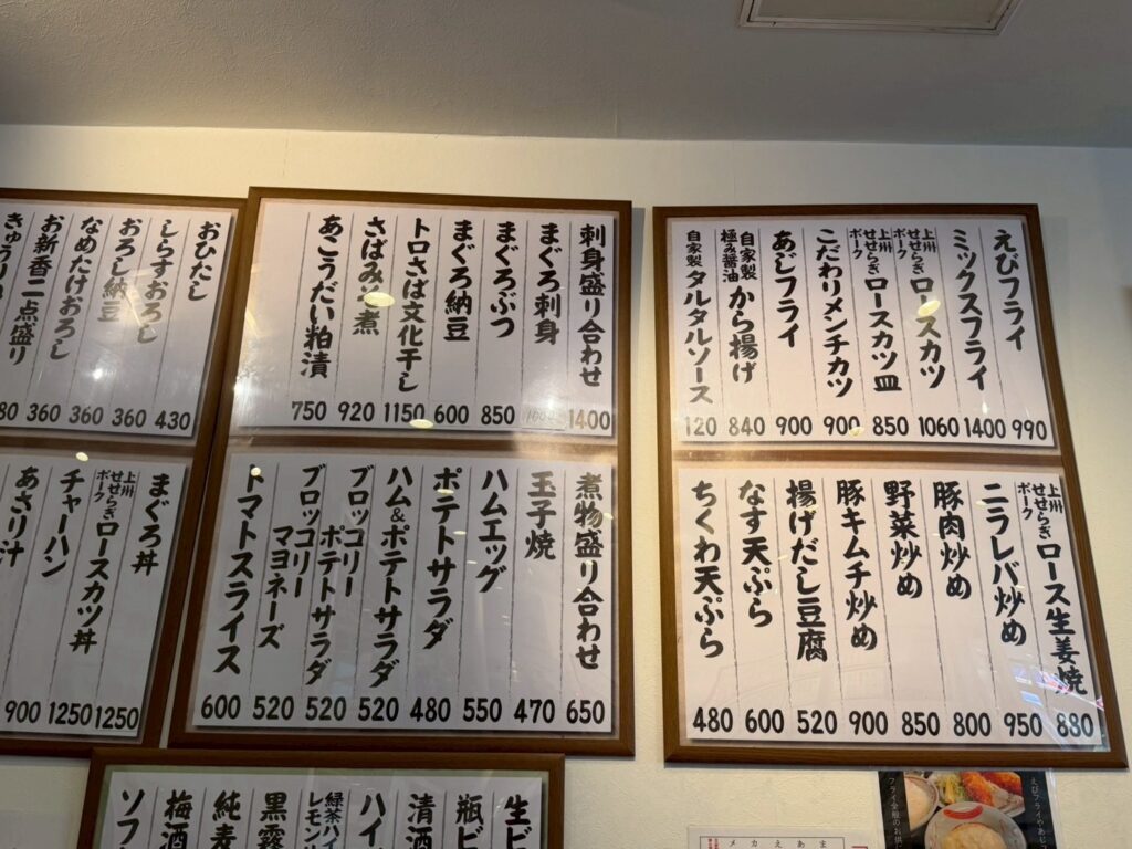 壁にはメニューがずらりと並んでいて、