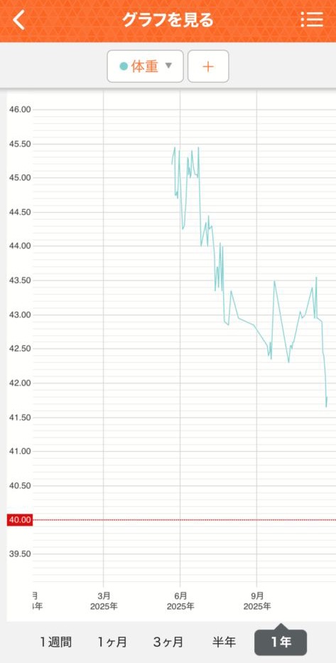 ようやく停滞期を抜け、ついに 41kg台前半へ!