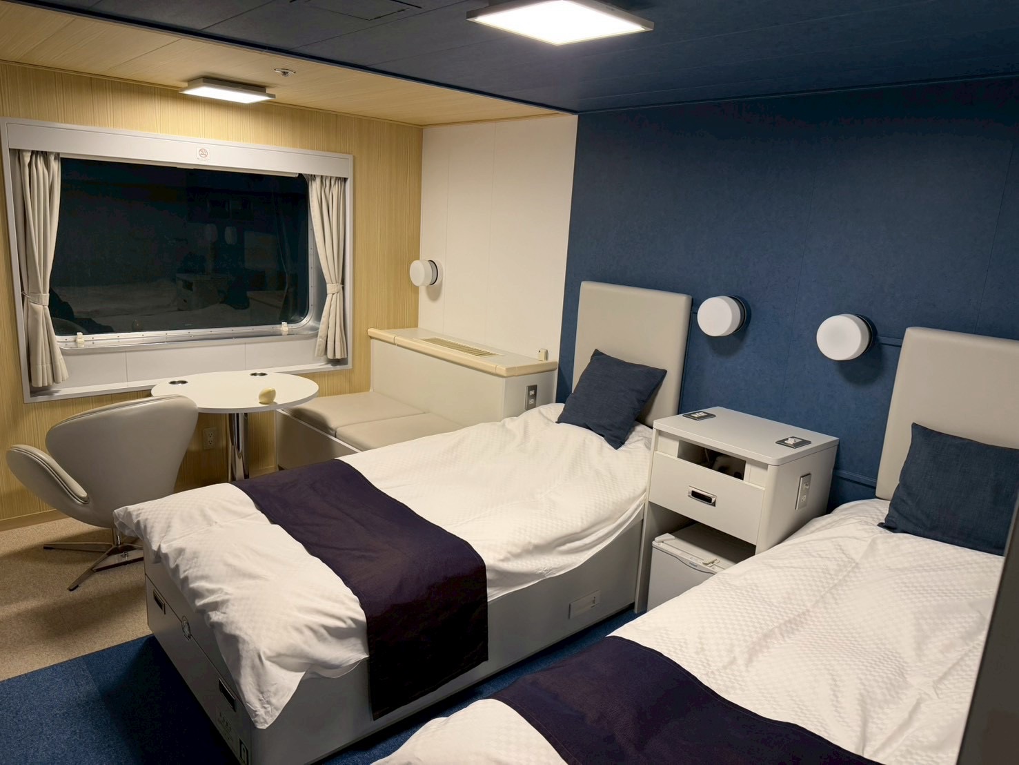 「早起きしないと〜!」なんて話しながら、いざお部屋へ。