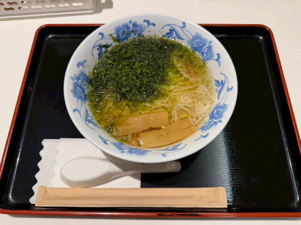 磯ラーメンは塩ベースのスープに、アオサの香りがふわっと広がる優しい味。