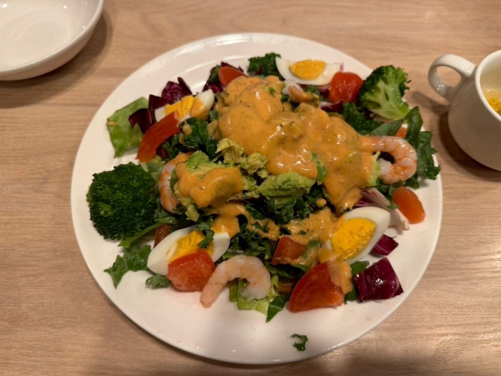ケールは少し苦味があるものの、ドレッシングがマイルドでバランスが良く、