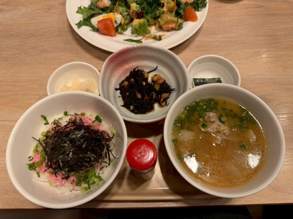味噌汁を「豚汁」に変更、ご飯を「ネギトロ丼」に変更しました。
