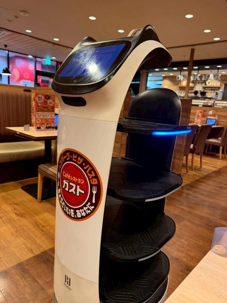 最近のすかいらーくグループのお店は、入口からセルフオーダーシステムや配膳ロボットが導入されていて、