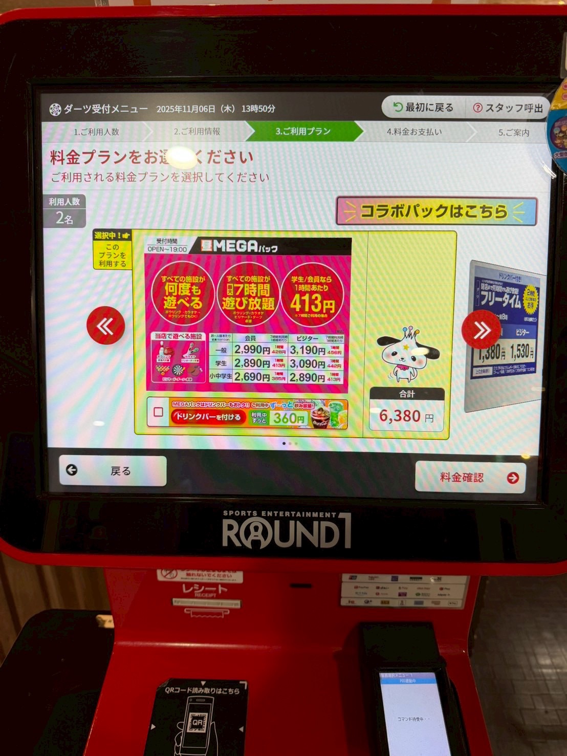 初めてのラウンドワン!せっかくなので「メガパック」に挑戦