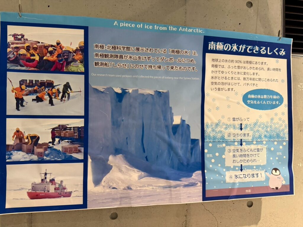 この施設は「国立極地研究所」が運営しており、南極や北極で行われている観測活動や、地球環境の変化を学べる科学館になっています。