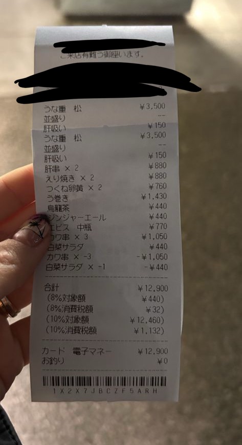 今回の合計金額は12,900円でした。お酒も飲んでこの値段は大満足です!