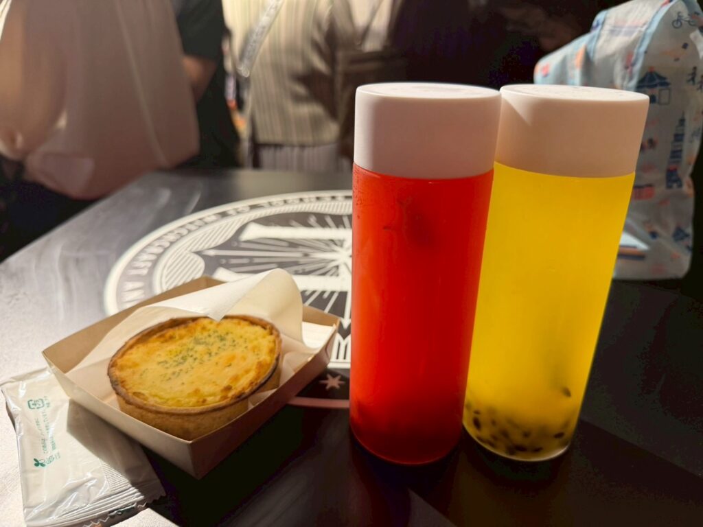 私たちは上演開始前に、劇場内のフードコートで飲み物とビーフパイをいただきました。