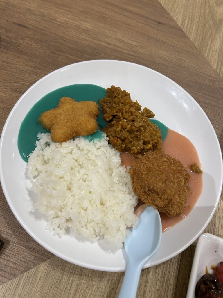 カレーは具なしのカラフルカレーで少し不思議な感覚。