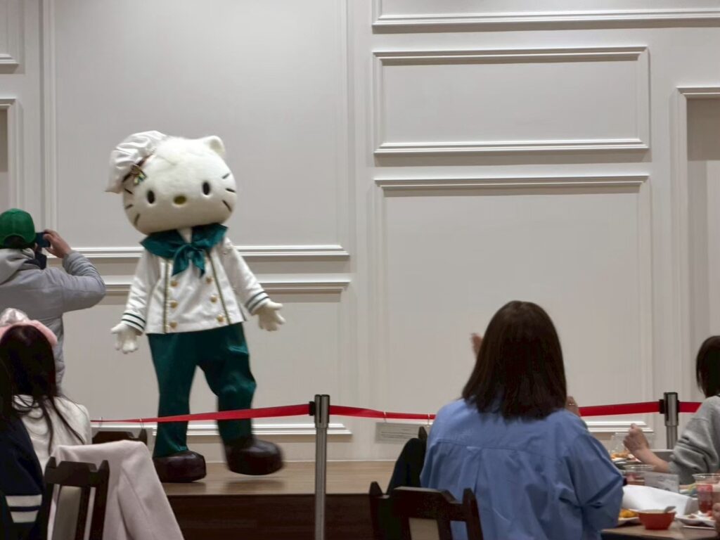 また、時間になると後ろのステージにサンリオキャラクターが登場します。