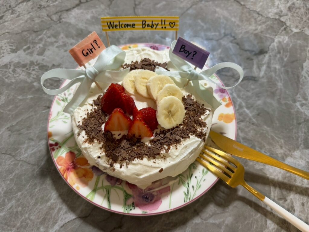 ずっとやってみたかったジェンダーリビールケーキで夫に性別発表をしました!