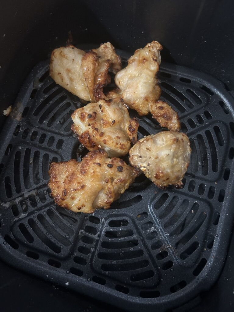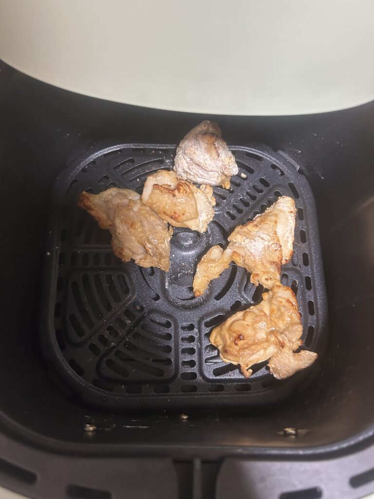 片栗粉をまぶし、COSORIのチキンモード(210℃/18分)でスタート。