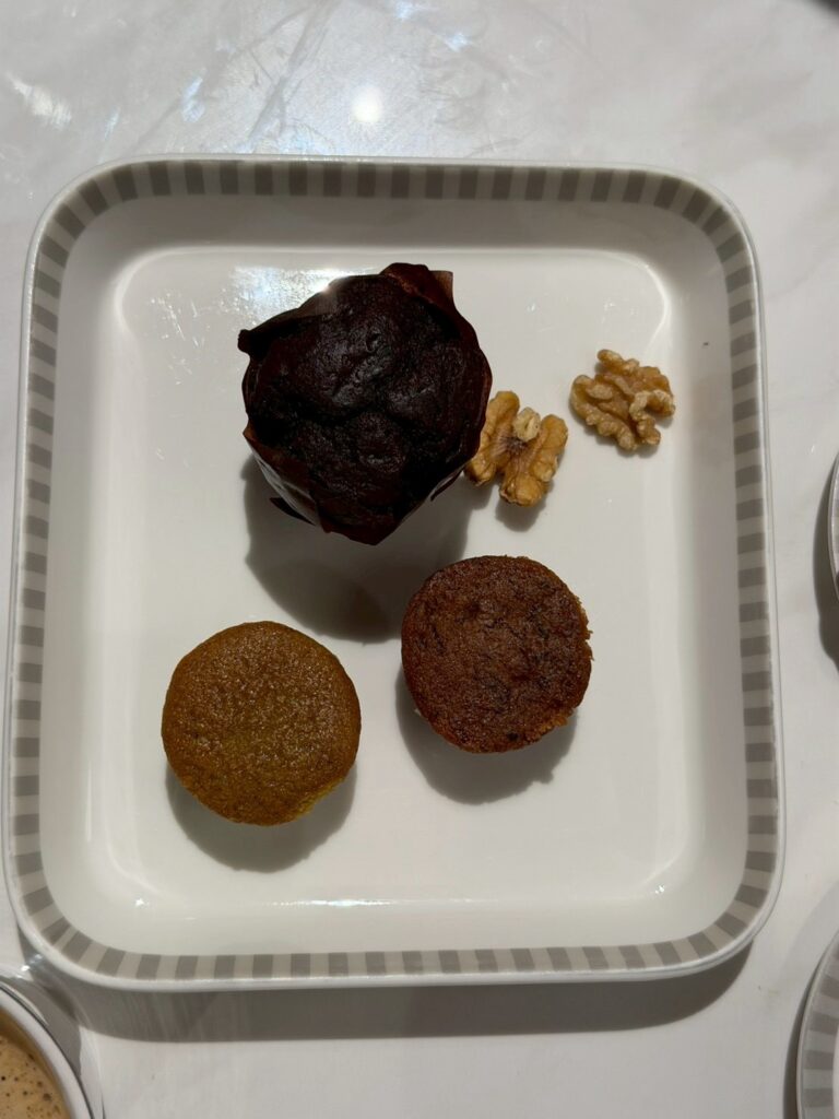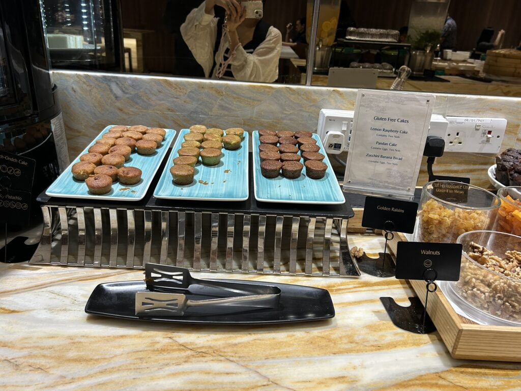 ラウンジでグルテンフリーのスイーツが
