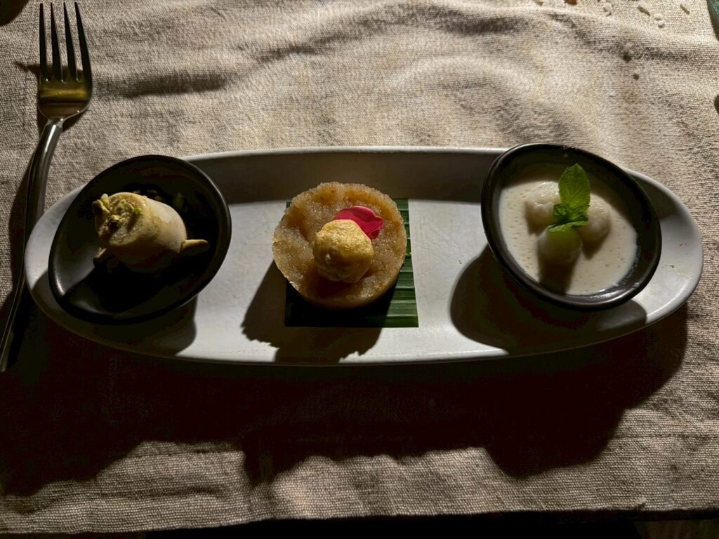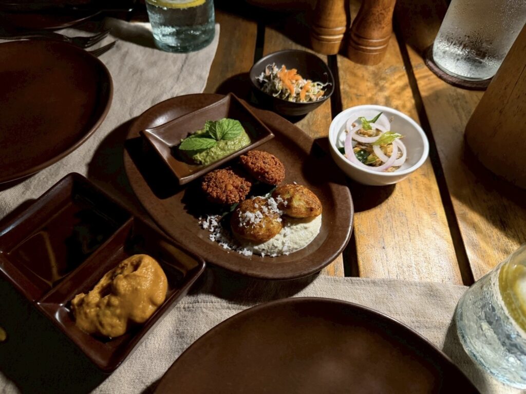 ビートルートとレンズ豆の揚げパンケーキ、タマリンド&ミントソース、緑豆もやしとココナッツのサラダなどです。