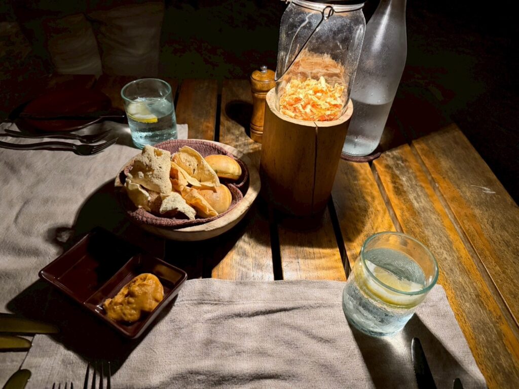 温かいパンとパパド(インドの薄焼きせんべい)が登場。