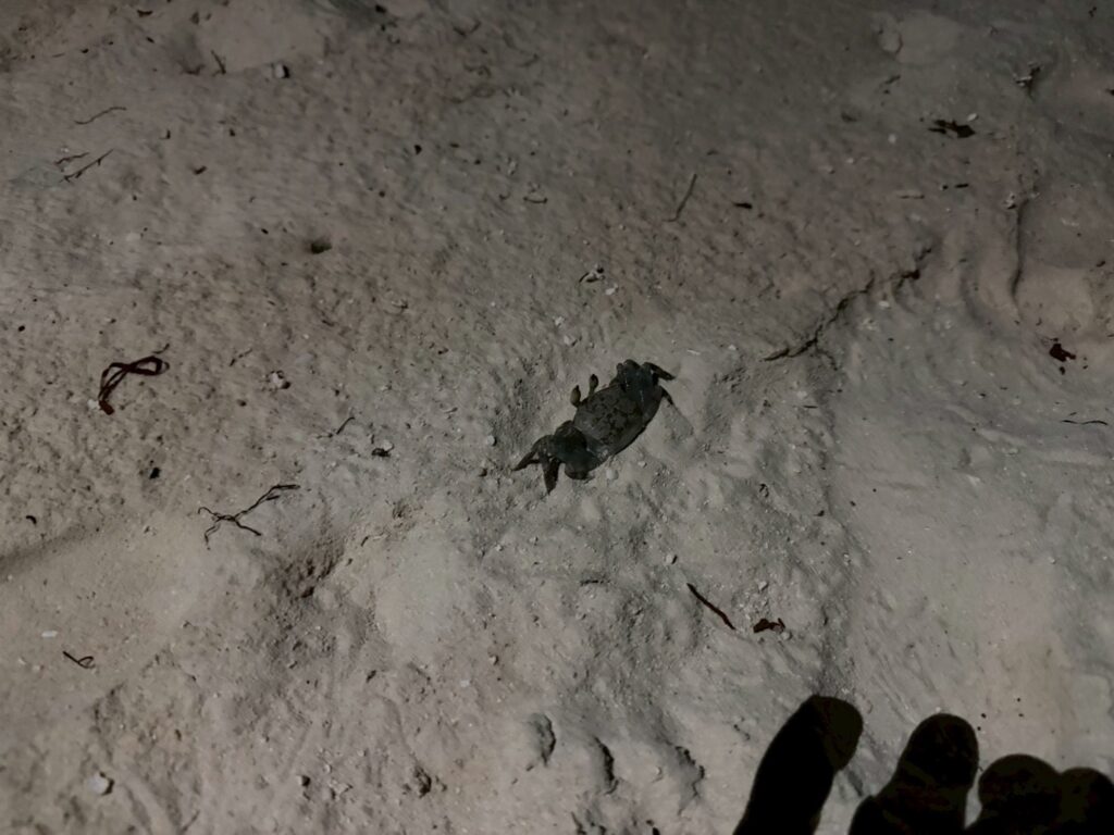 帰り道、夜の砂浜にはたくさんの蟹たち。