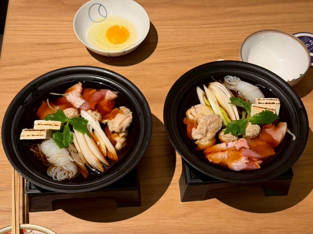 出汁と軍鶏の旨味が合わさって、シンプルなのに深い味わい。すき焼き風の味付けでした。