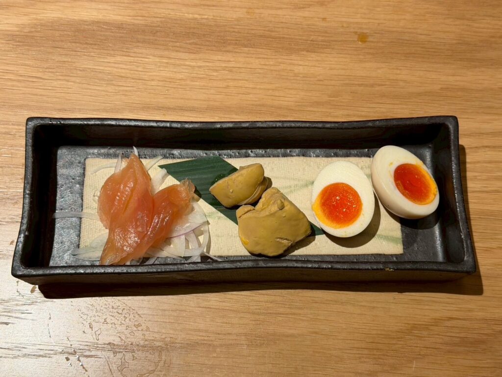 白レバーはとろっと濃厚で、燻製の香りが加わることでまるで高級パテのような味わい。