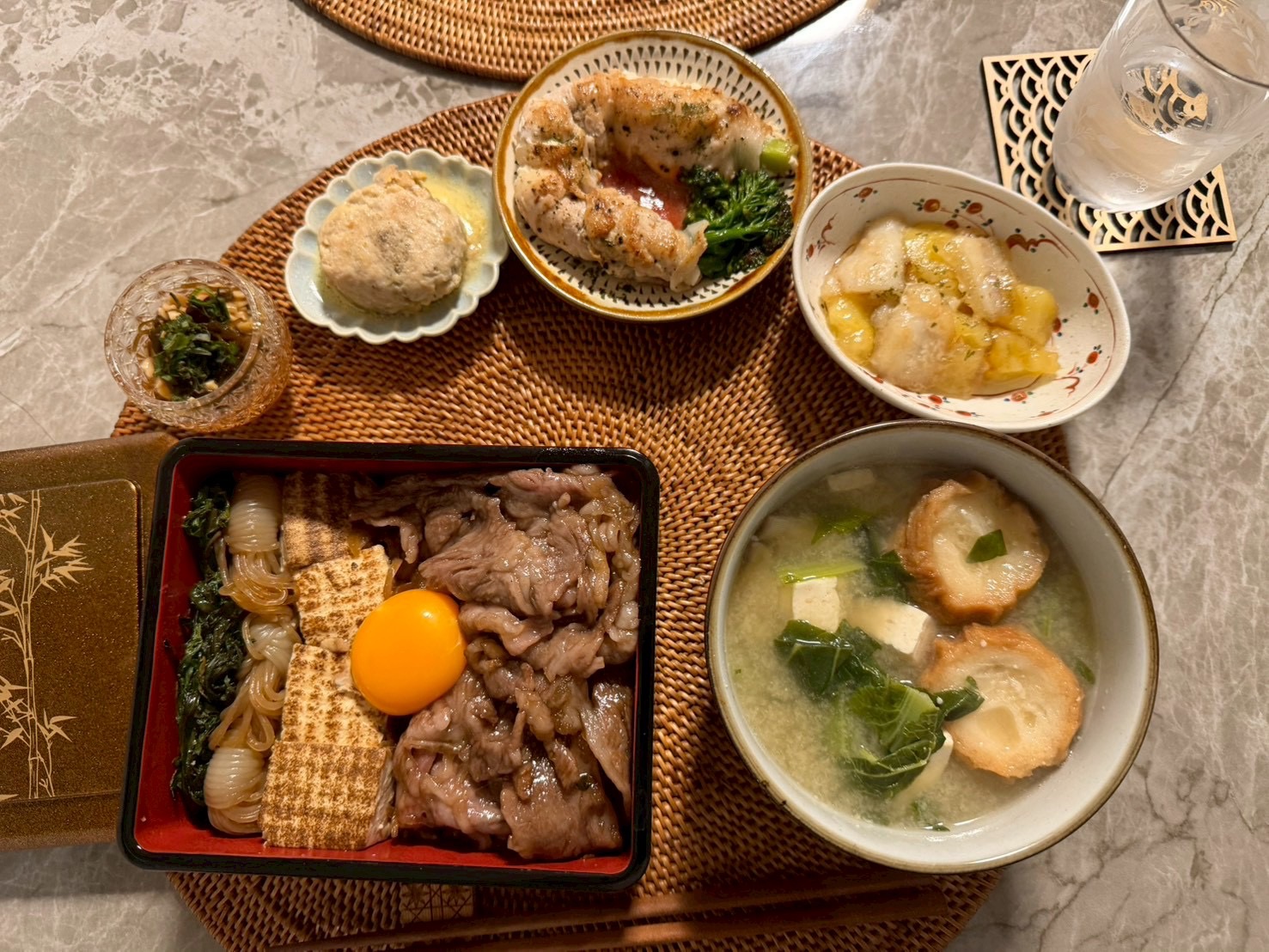 寒い日にぴったりの幸せ食卓。松阪牛すき焼き重メインの献立!