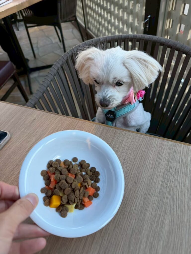 周囲を見渡すと、同じように愛犬と一緒に朝食を楽しんでいる方がたくさんいて、改めてドッグフレンドリーなホテルだなと感じました。