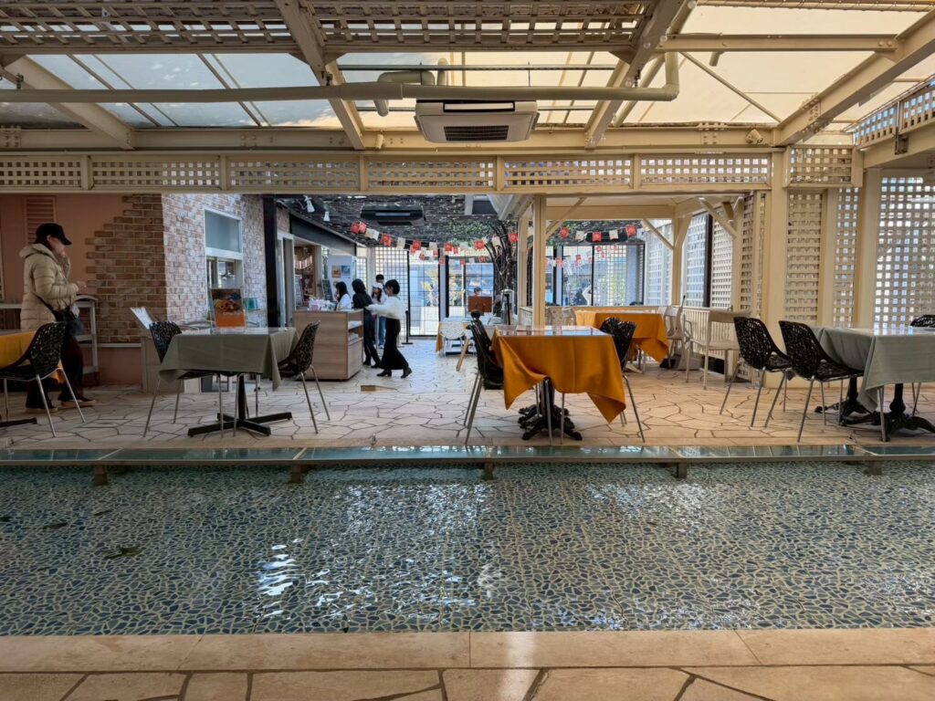 店内に入ってまず驚いたのが、中央にあるプール。