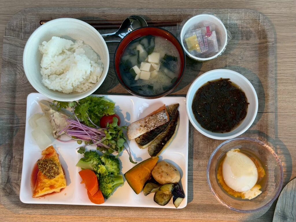 新鮮なサラダや温野菜、卵料理、パン、ごはん、おかず類など、どれも美味しそうで、ついつい取りすぎてしまいました(笑)