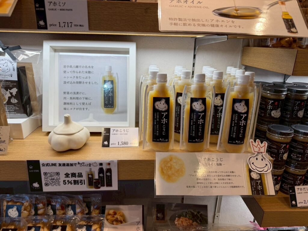 店内はニンニク製品がずらり。