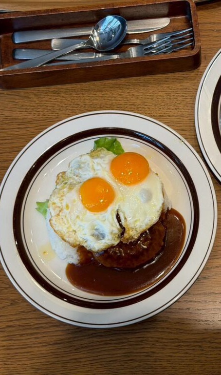 ジューシーなハンバーグに、とろっとした目玉焼き、そして濃厚なグレービーソース。