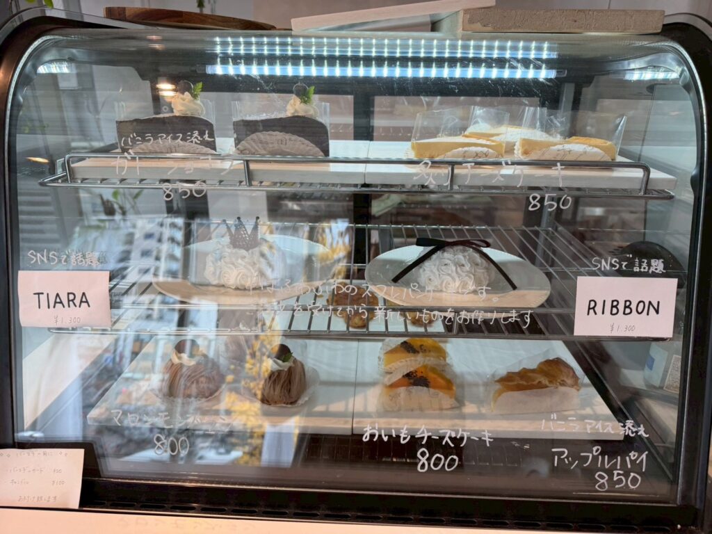 スイーツ好きにも、景色を楽しみたい人にもおすすめです。ちなみにプリン以外にも、ショーケースに沢山ケーキが並んでいました♪