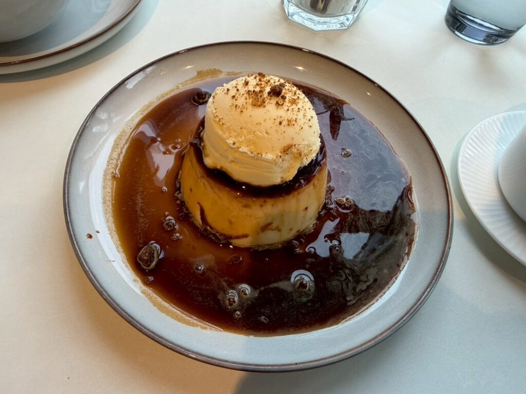 プリンの上にバニラアイスがのっていて、そこに自分で エスプレッソソースをとろ〜り。