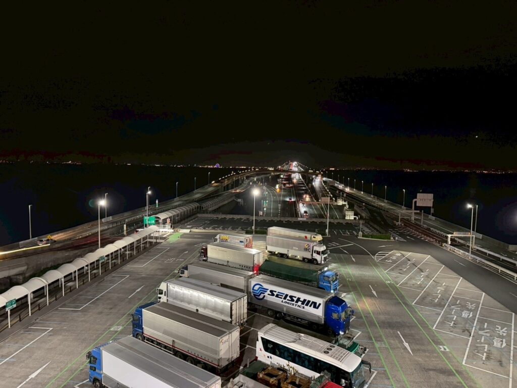 なんと 全長約650mの人工島に造られた、世界でも珍しい“海に浮かぶPA” なんです。