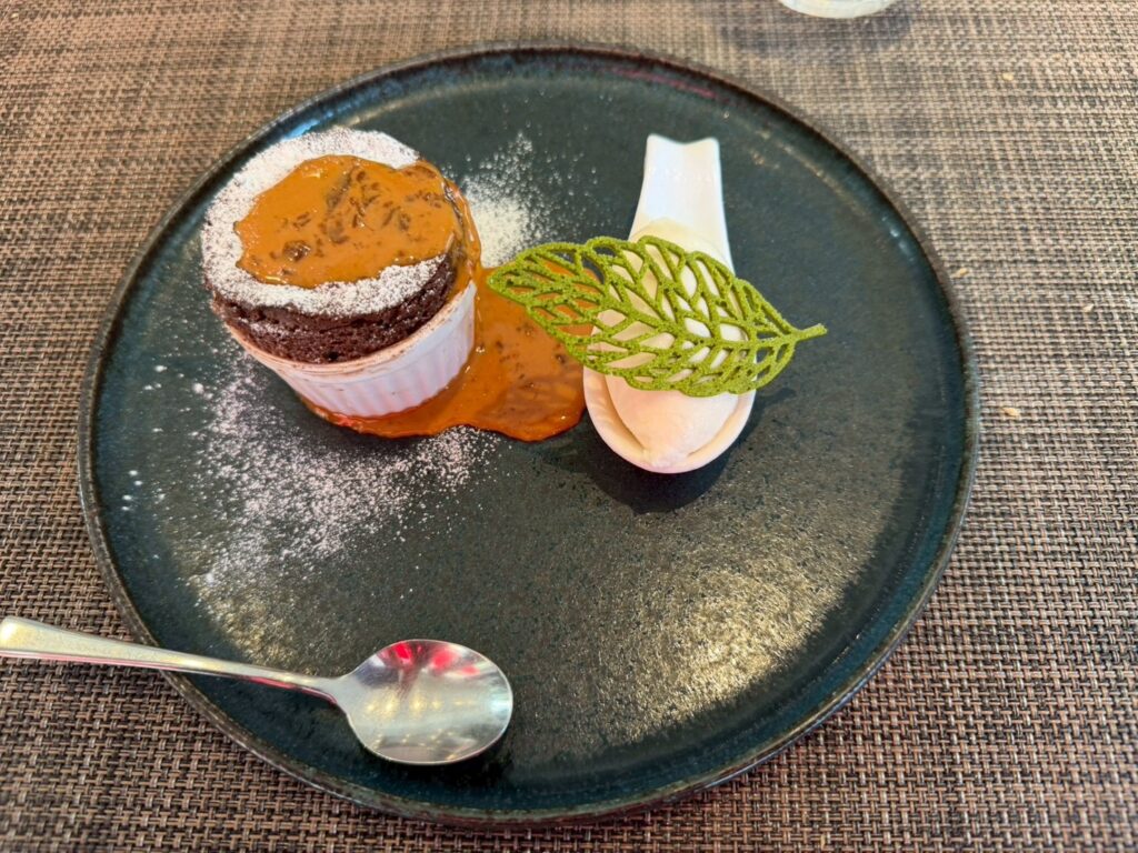 フォンダンショコラは、ナイフを入れると中から濃厚なチョコレートがとろり。