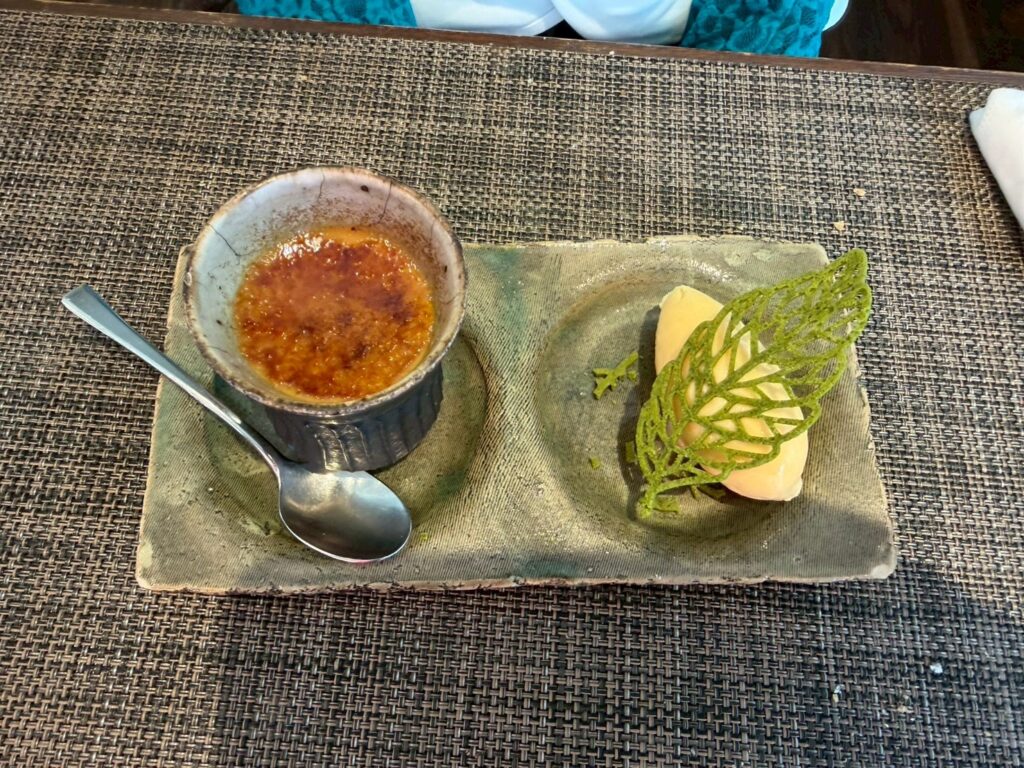 黒糖のブリュレは、香ばしい表面を割る瞬間が楽しい。
