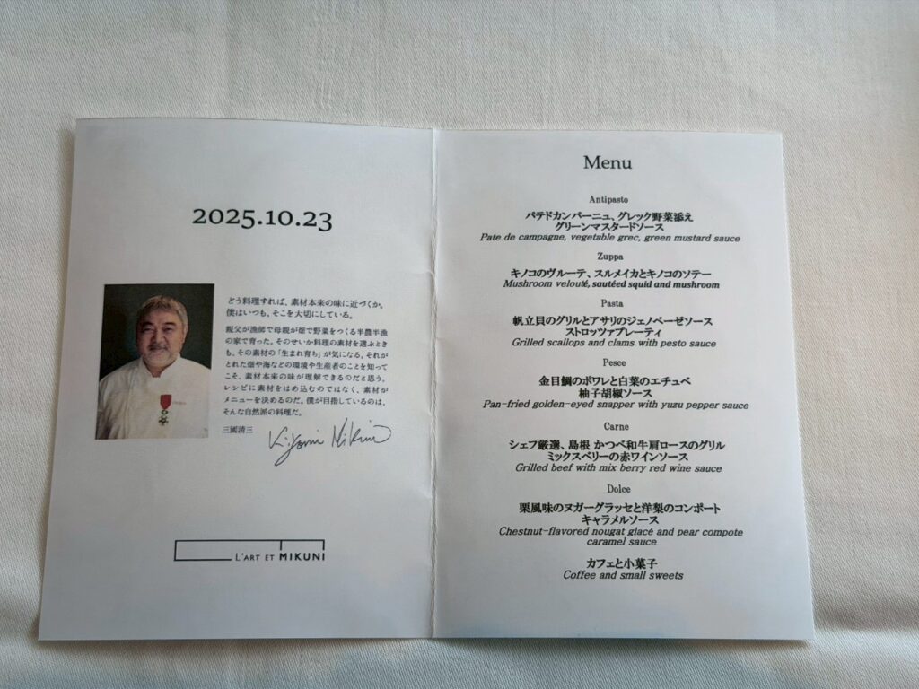 一口ごとに香りが広がり、最初の皿からすでに“ミクニらしい洗練”を感じました。