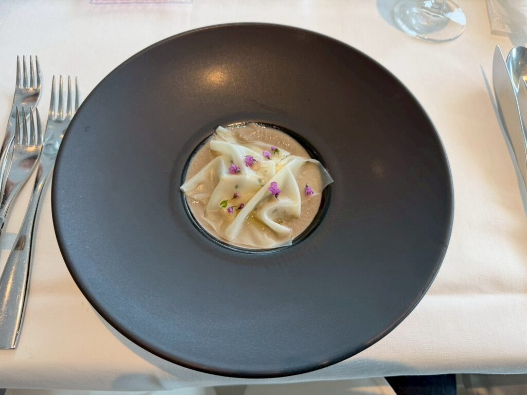 キノコの香りが立つヴルーテ(とろりとしたスープ)の中で、